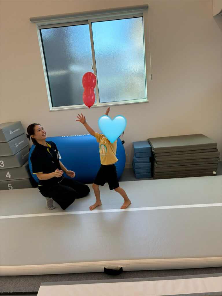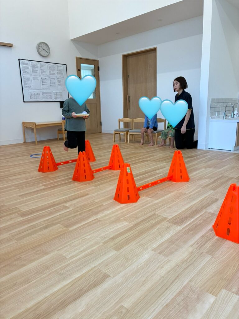 ・ボール運び・ハードル跨ぎにて、目と手の協応や手の回外の動きの促進・二重課題の遂行を促進し、食事動作に繋げていく