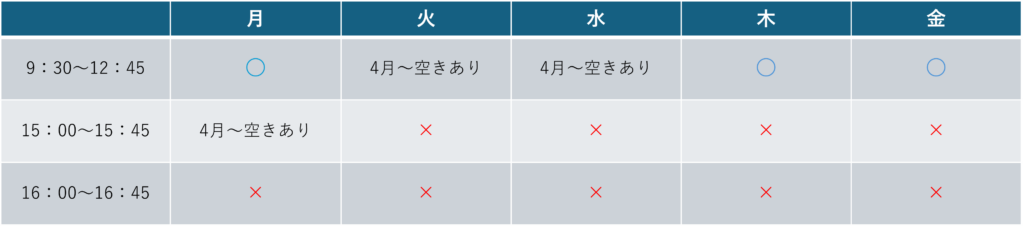 現在の空き状況についてお知らせいたします。